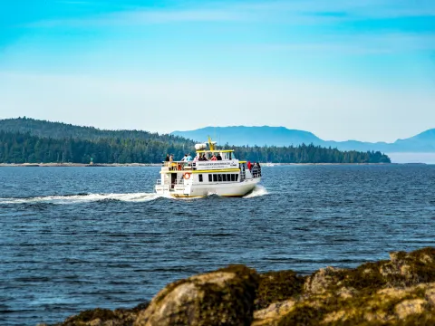 The Lighthouse Endeavor cruises along the shoreline on her way to Guard Island Lighthouse. Photo by Alabastro Photography.