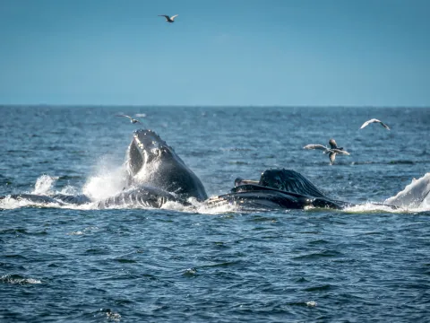 Humpback whales seen bubblefeeding from the deck of the Lighthouse Endeavor. Photo by Alabastro Photography.